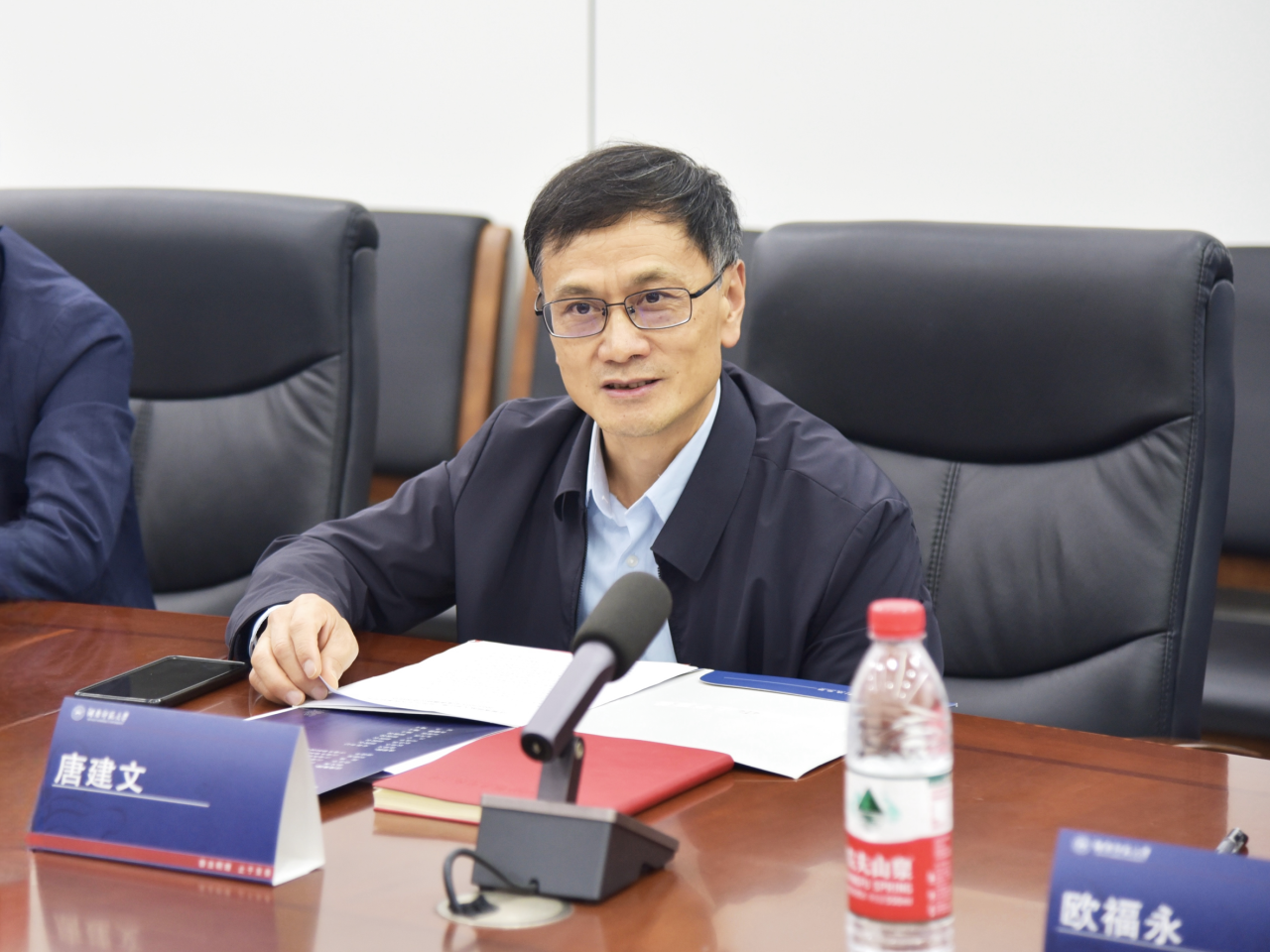 唐建文书记讲话。他对江湾集团长期以来对法学院的大力支持表示衷心感谢。他说,只有像江湾集团这样服务民生福祉的企业越办越好,社会也才会越来越好。希望院企双方以研究院为平台纽带,继续深化合作交流,为企业健康发展、合规经营提供智力支持的同时,共同服务法治中国建设。唐书记还要求各个课题组要以高度原创的创新视角,遵循科学严谨的研究方法,聚焦新领域、新课题,开展务实研究,做到既有理论研究的创新性,又有解决问题的实用性,让各项研究成果在维护企业安全与发展中发挥具体作用。