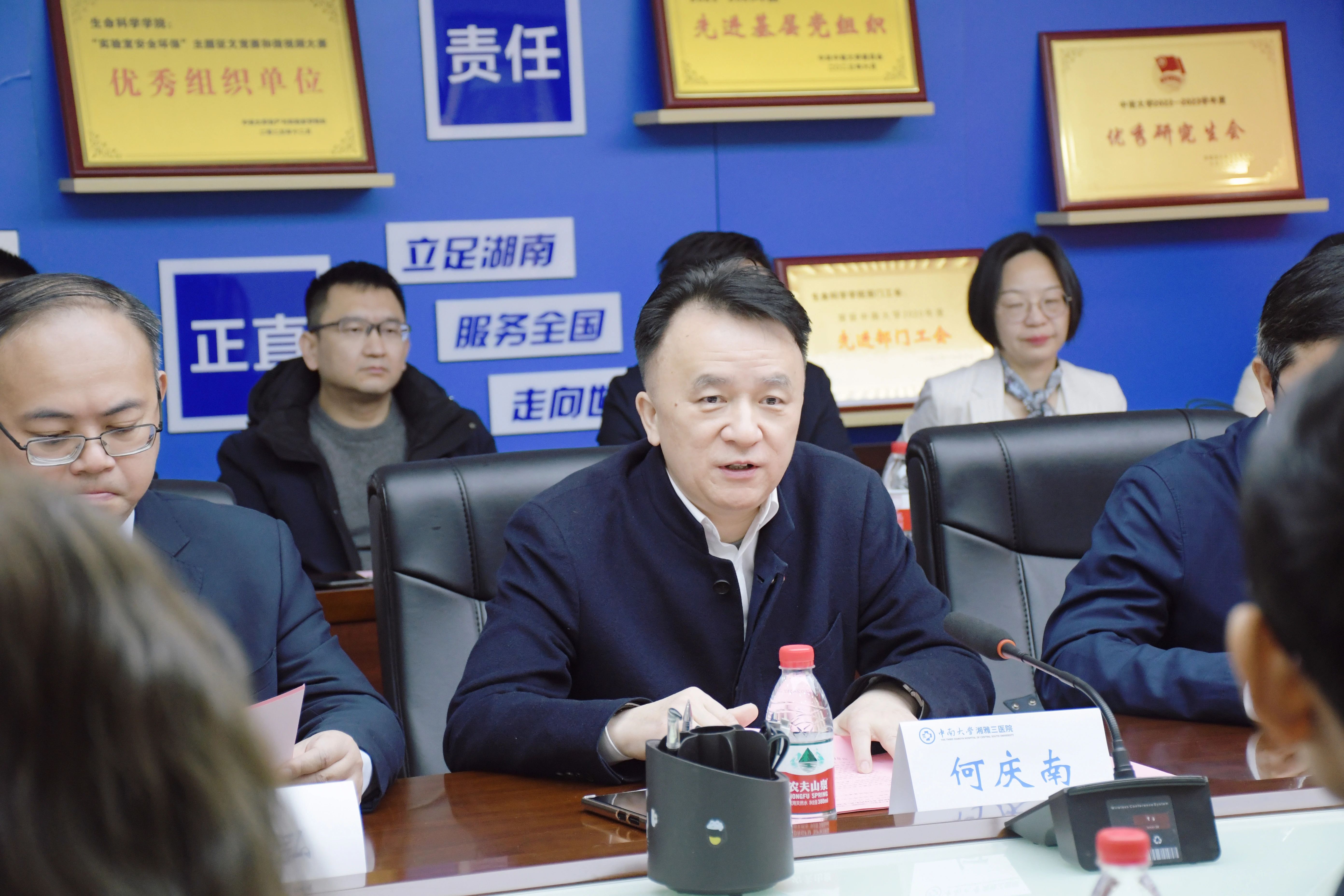 仪式伊始,中南大学湘雅三医院党委书记何庆南率先致辞。何书记简要回顾了硕果丰盈的多方合作发展历程,他指出只有相互交叉合作才能有新发展、新突破,并寄望校、企、院各方以联合实验室启动为契机,加强在科研和临床领域的合作,齐心协力、相互支持,共同促进医药卫生事业的发展。