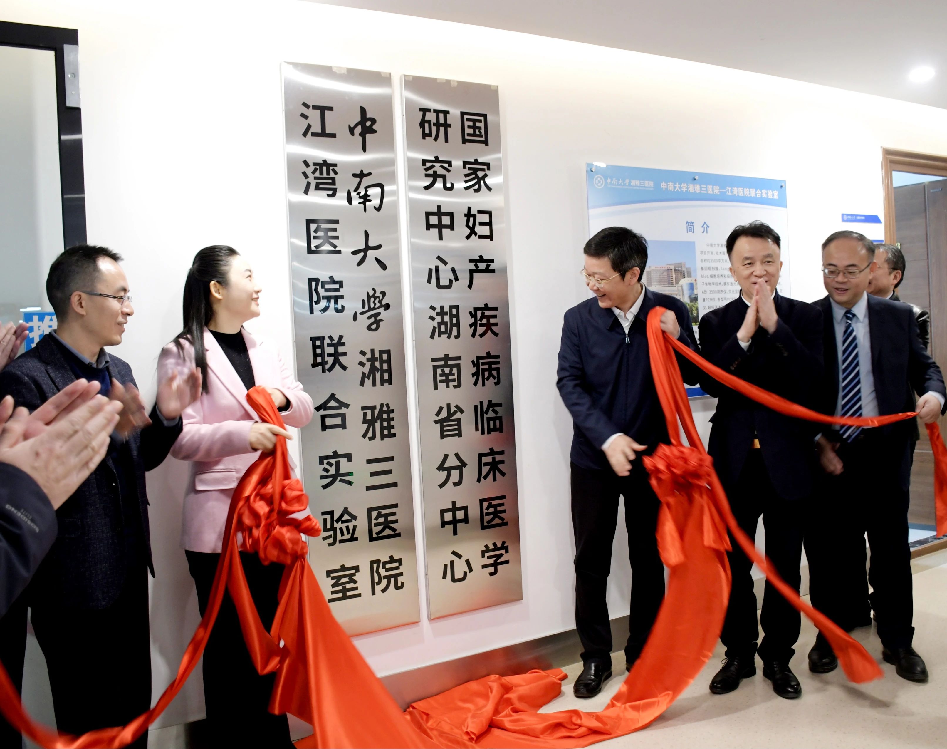 签约完成后,各位领导嘉宾移步实验室现场,共同为“中南大学湘雅三医院-江湾医院联合实验室”“国家妇产疾病临床医学研究中心湖南省分中心”揭牌,并一起参观了实验室。