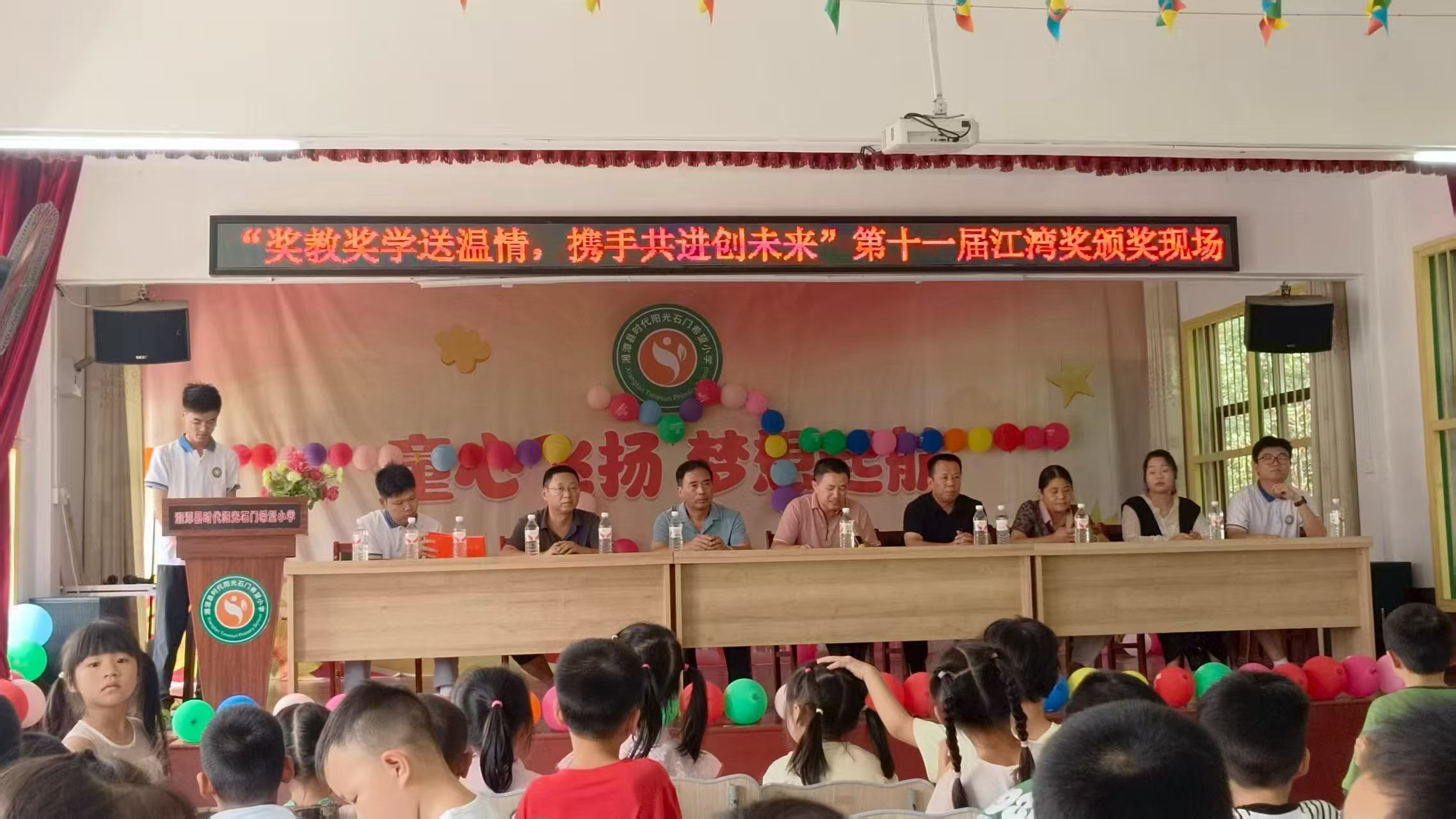2025年9月10日,正值第41个教师节,湘潭青山桥镇时代阳光中学礼堂内暖意融融,长沙江湾集团第十一届“江湾奖”奖教奖学颁奖典礼在这里隆重举行。青山桥镇宣委唐思尘、中心校党委书记陈洪明、校长田小良等领导嘉宾与全校560余名师生、30多名家长代表共同见证了这一温暖时刻。